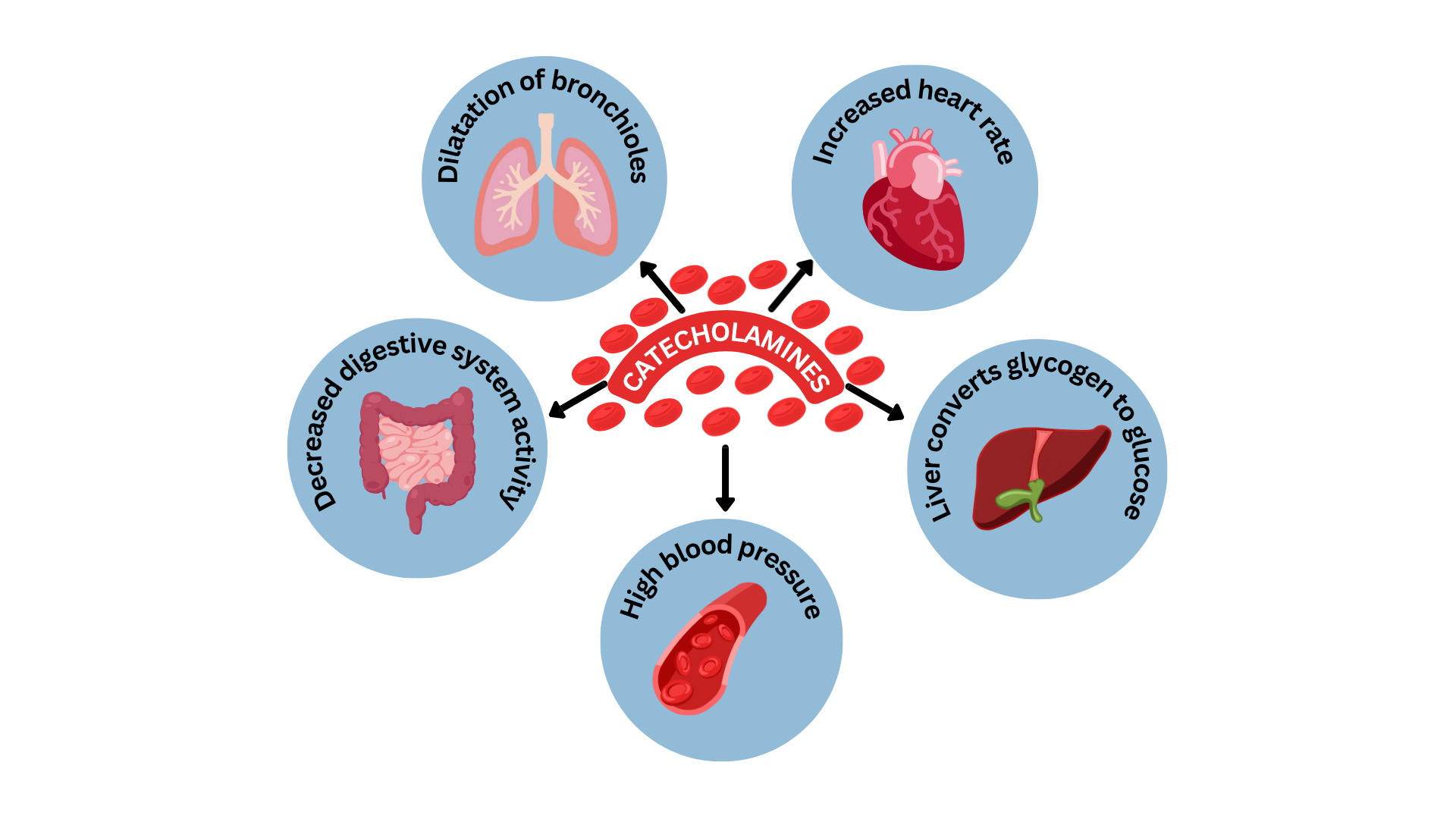 Figure 4.15b Physiological effects of catecholamines on major body systems. (TRU Open Press (2025)/Canva AI; modified from ) CC BY NC SA