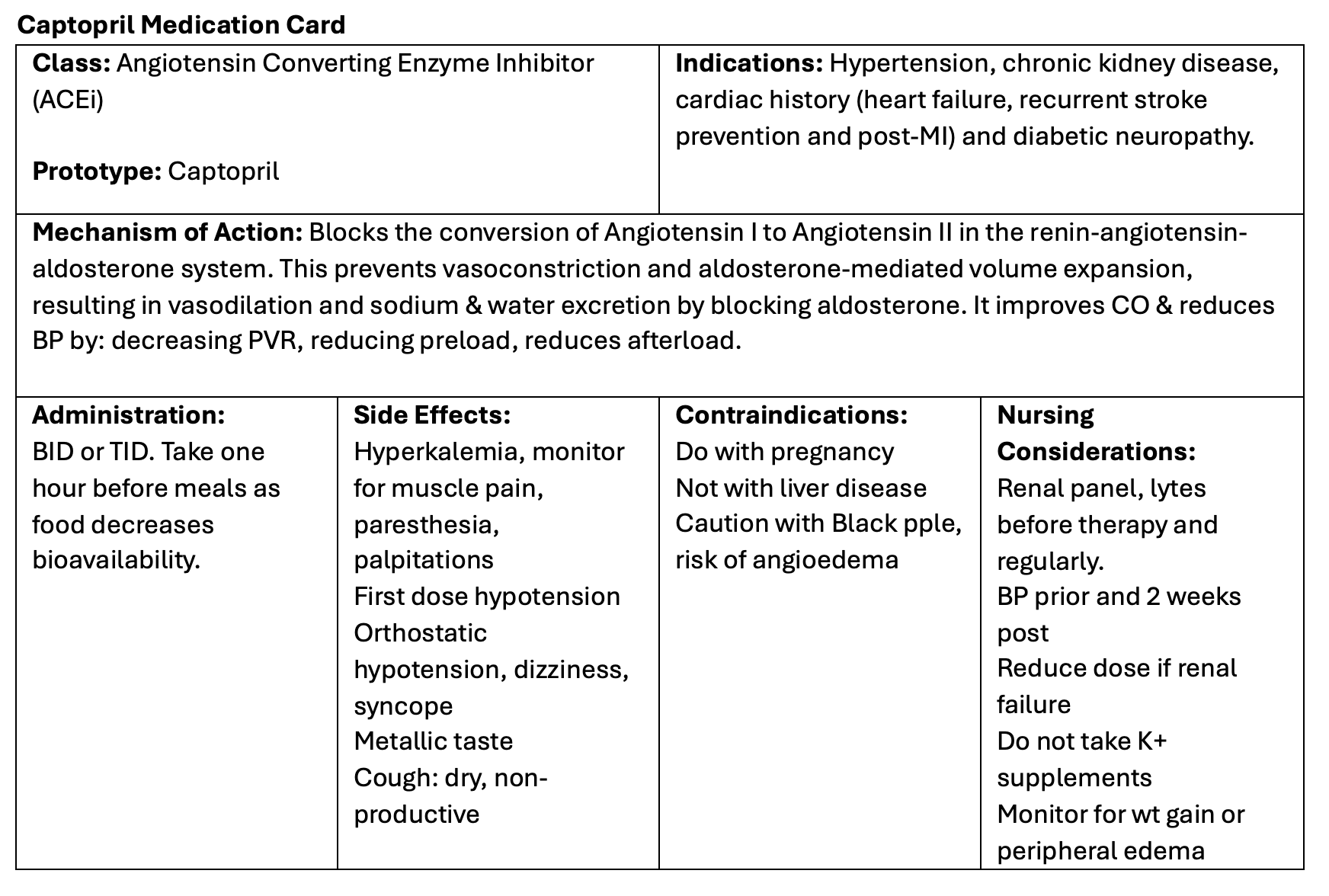 Downloadable file (.docx): Captopril Medication Card