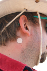 - Apply the transdermal system to the skin in the postauricular area (hairless area behind one ear).